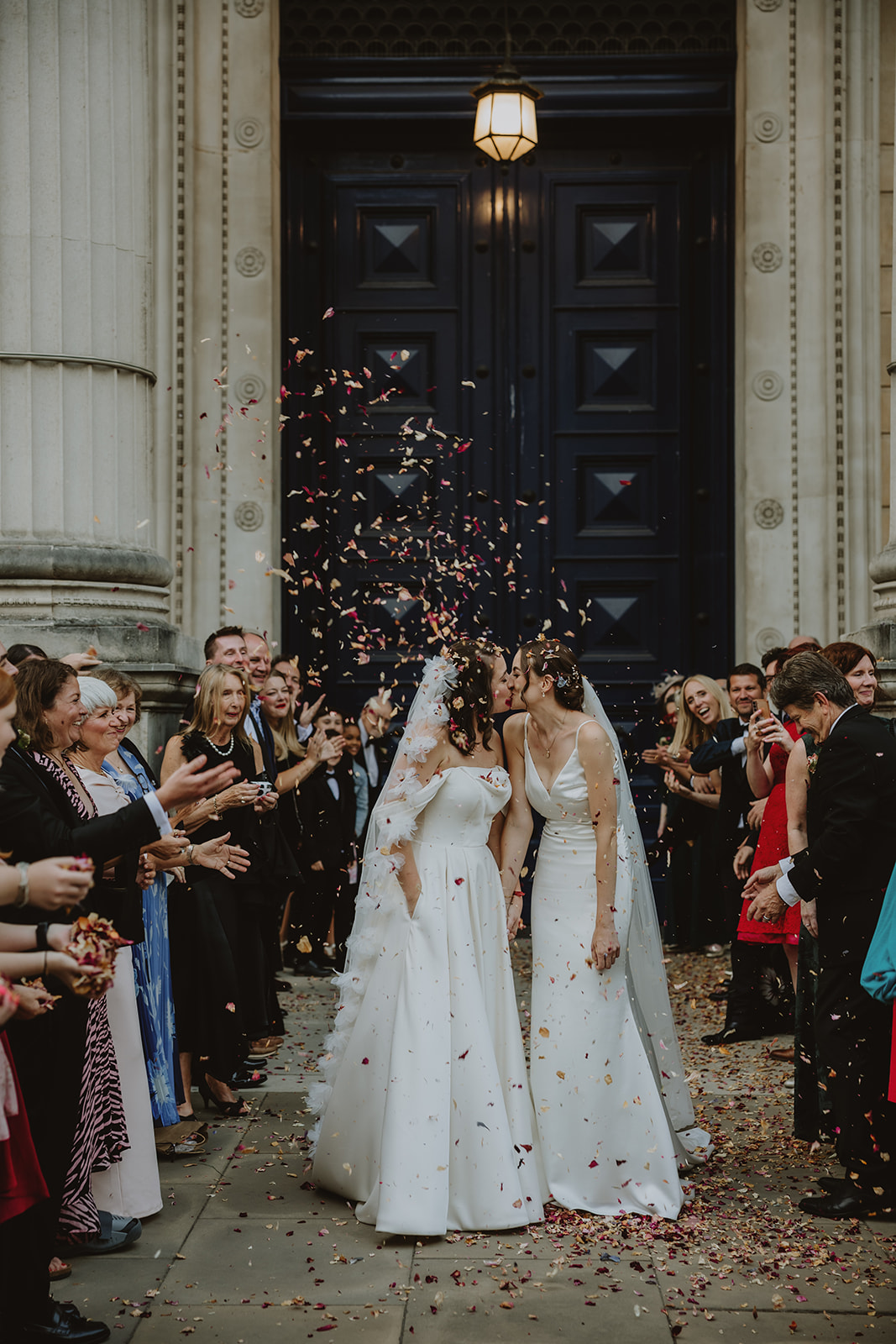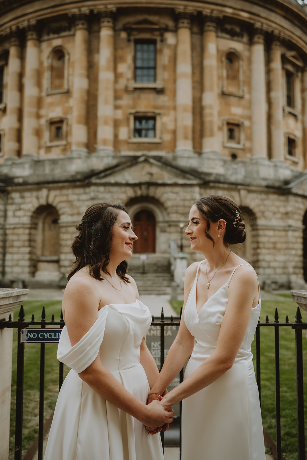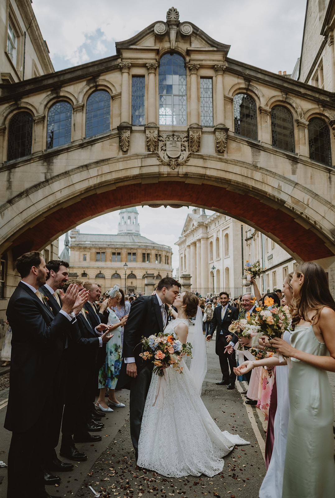 Two Brides dance under the bridge of sighs in Oxford city centre after their wedding
