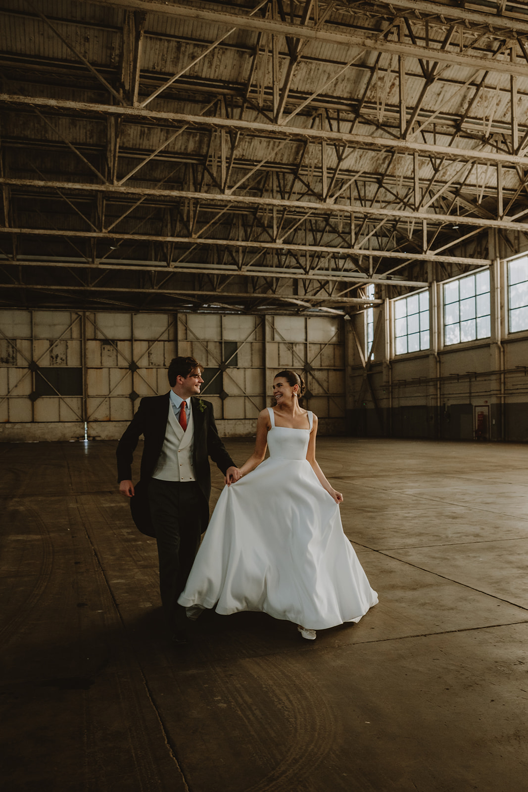 Wedding Couple walk down the stairs in the Ashmolean Museum in Oxford